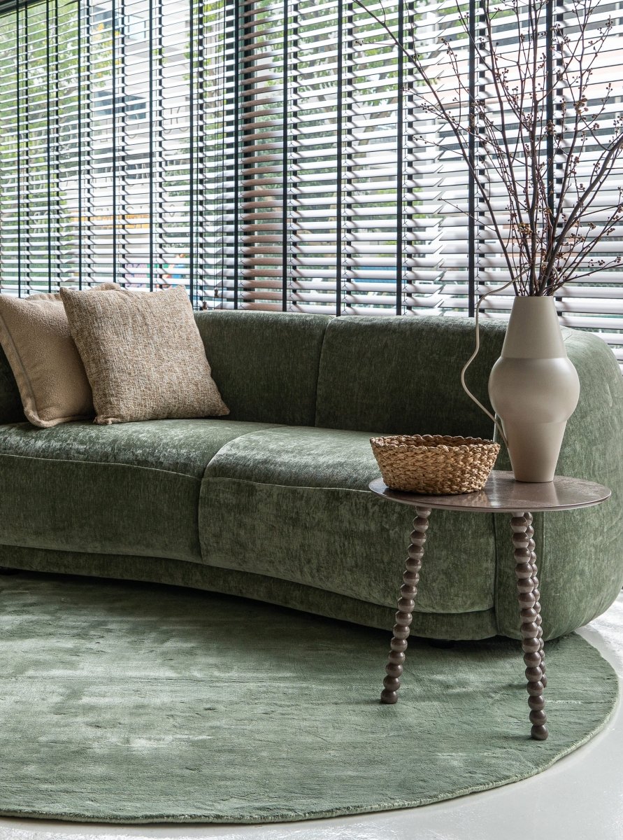 Get the correct rug size with the help of our size guide. Ensure that your sofa, or at least its front legs, are placed on the rug.